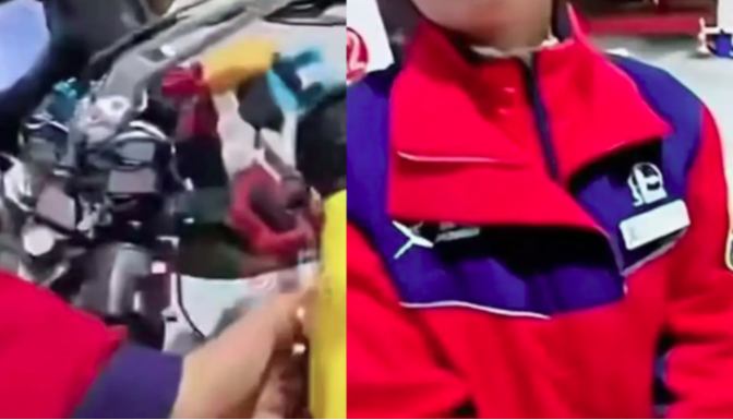 加油被拒把油喷地面
